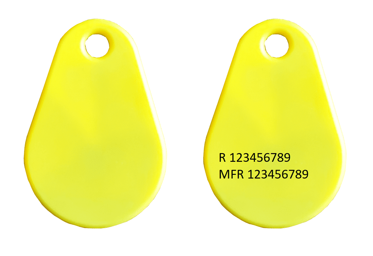 „ABS Plus“ RFID-Schlüsselanhänger/Tags sind in einer Stückzahl von über 100.000 auf Lager und in 6 Farben (Rot, Blau, Weiß, Schwarz, Grün, Gelb, Orange) und mit verschiedenen Chips erhältlich.