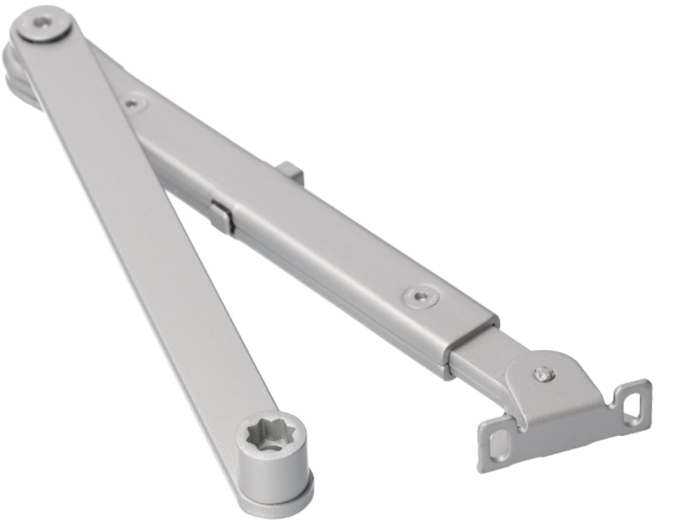 Armsystem mit mechanischer Ratschenverstellung, die ein- und ausgeschaltet werden kann. Geeignet für die Türschließergehäuse TS83 und TS73.