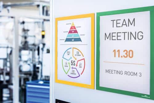 Brug DURAFRAME® MAGNETIC magnetisk klæbende inforammer til at vise brugervejledninger, maskinfakta, medarbejderinformation og anden midlertidig eller mere permanent information på en professionel, hurtig og nem måde.