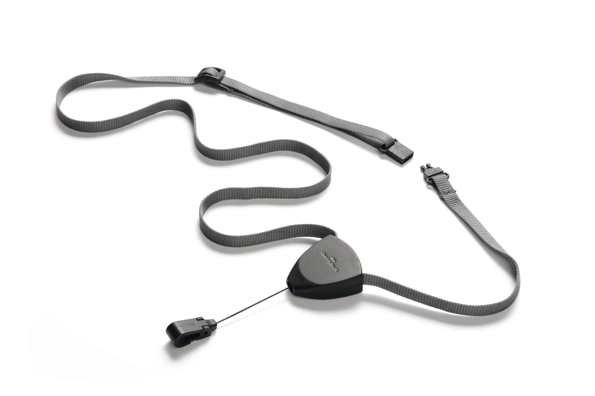0,8 cm bredt bånd af silkeblødt tekstil med udvidelig yo-yo-beslag med krog. Nøgleringen har en sikkerhedslås, der åbner, hvis du bliver fanget i noget og en justerbar længde mellem 24 og 50 cm. Kan kombineres med f.eks. navneskilte eller kortholdere til adgangskort. 0,9 cm bred krog lavet af kraftig ABS.