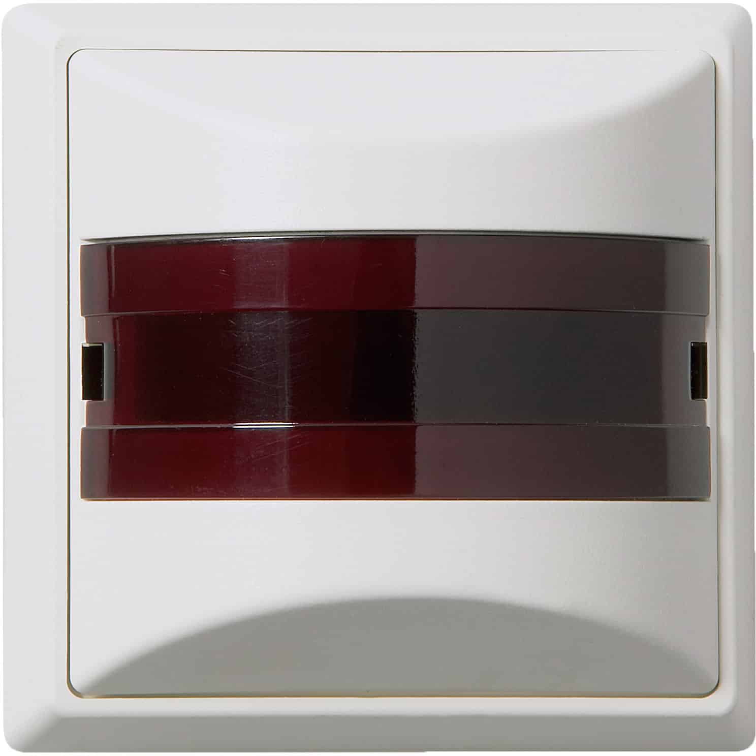 Room lamp with memory. Room lamp with red LED indication and adjustable buzzer, memory function and alarm relay with two potential-free changeover contacts. Rated voltage: 24VAC/DC. For mounting on pipe outlet or on appliance box with 60mm fastening screw distance. Dimensions: 85×85 mm. Color white