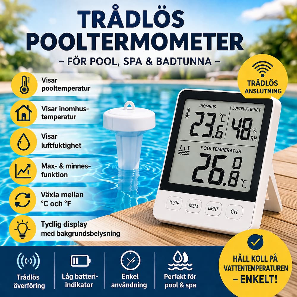 Trådlös Pooltermometer med Digital Display