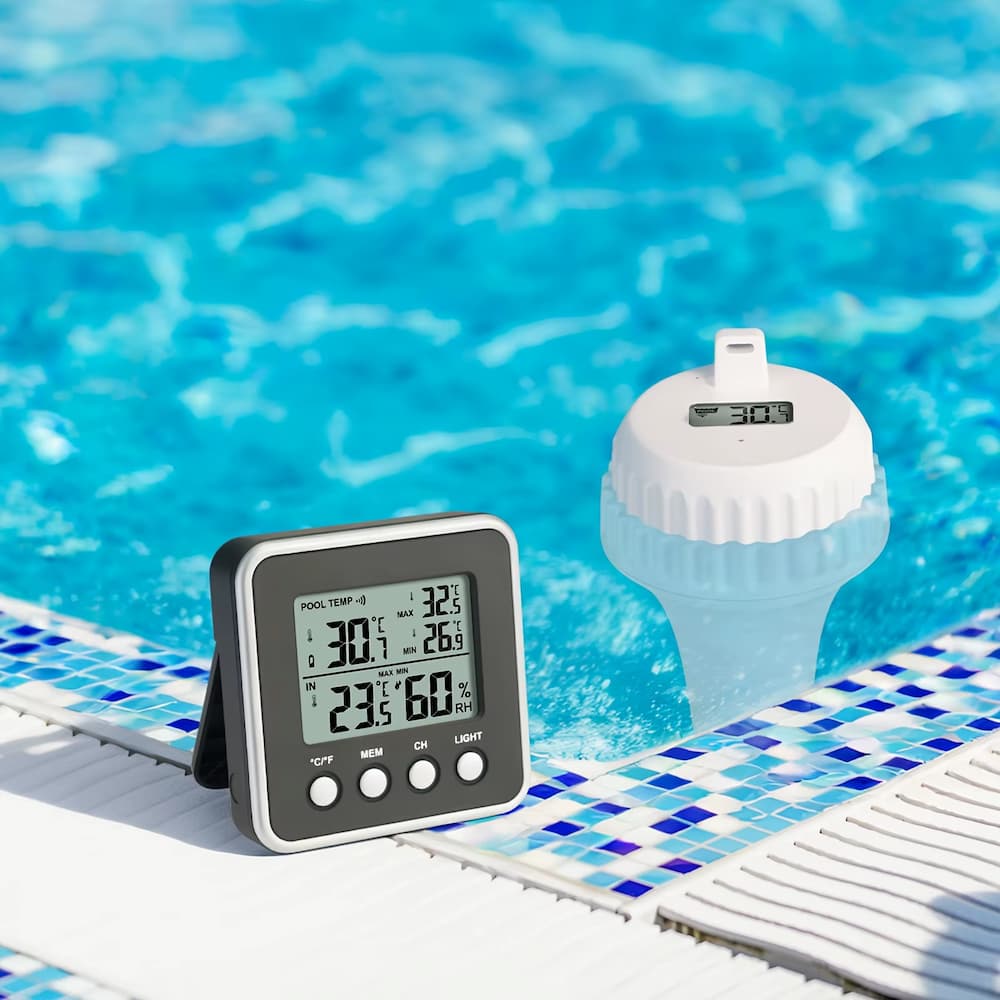Den trådlösa poolsensorn placeras i vattnet medan huvudenheten visar aktuell temperatur inomhus. Det gör att du slipper gå ut för att kontrollera om vattnet håller rätt temperatur för bad, spa eller avkoppling i badtunnan.