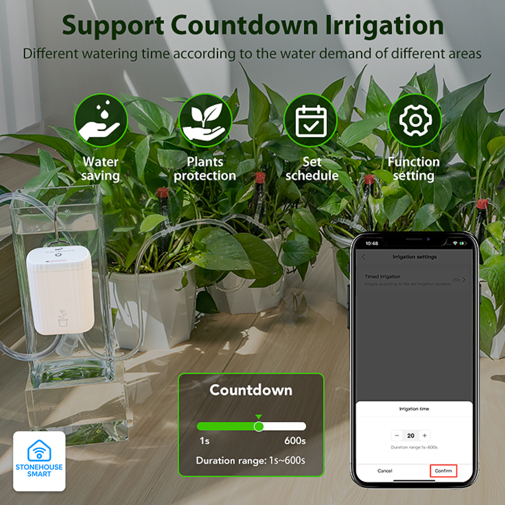 Prima: Intégralo en Google Home/Alexa y di "Regar las plantas". ¡Listo!