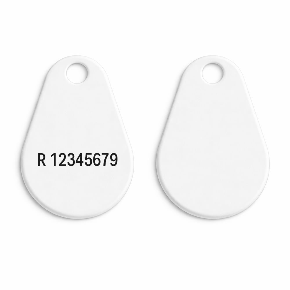 Etiqueta combinada blanca sin contacto para sistemas RCO (Mifare (4K) / Prox EM 4200). Ambas tecnologías de lectura utilizan el mismo número de identificación para facilitar su manejo.
