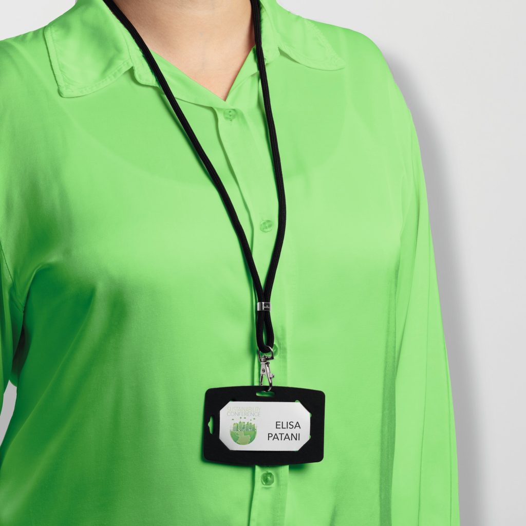 Kierrätetystä PET:stä valmistettu pyöreä kudottu avaimenperä, jossa on turvalukitus, joka aukeaa, jos jäät kiinni johonkin - yhdistelmä ympäristöystävällisyyttä, toimivuutta ja muotoilua. Pyöritettävä metallinen karabiini. Tekstiilikaulusta käytetään yhdessä passikorttien, reikäisten nimilappujen tai avainten korttipidikkeiden kanssa. Avaimenperä koostuu 80% kierrätysmateriaalista ja on 100% kierrätettävä.