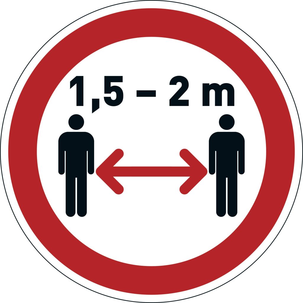Pour plus de sécurité dans les lieux publics : des autocollants de marquage au sol avec des symboles obligatoires ou interdits permettant de communiquer les règles d'hygiène et de distance. Grand autocollant de sol autocollant et amovible « Gardez une distance de 1,5 à 2 m » qui informe et rappelle clairement de respecter les distances dans les environs (par ex. magasins, salles de sport, hôtels, restaurants). Se fixe sur des sols en béton propres et secs. Indice antidérapant R9 selon DIN 51130. Les panneaux répondent aux exigences de la norme ISO 7010.