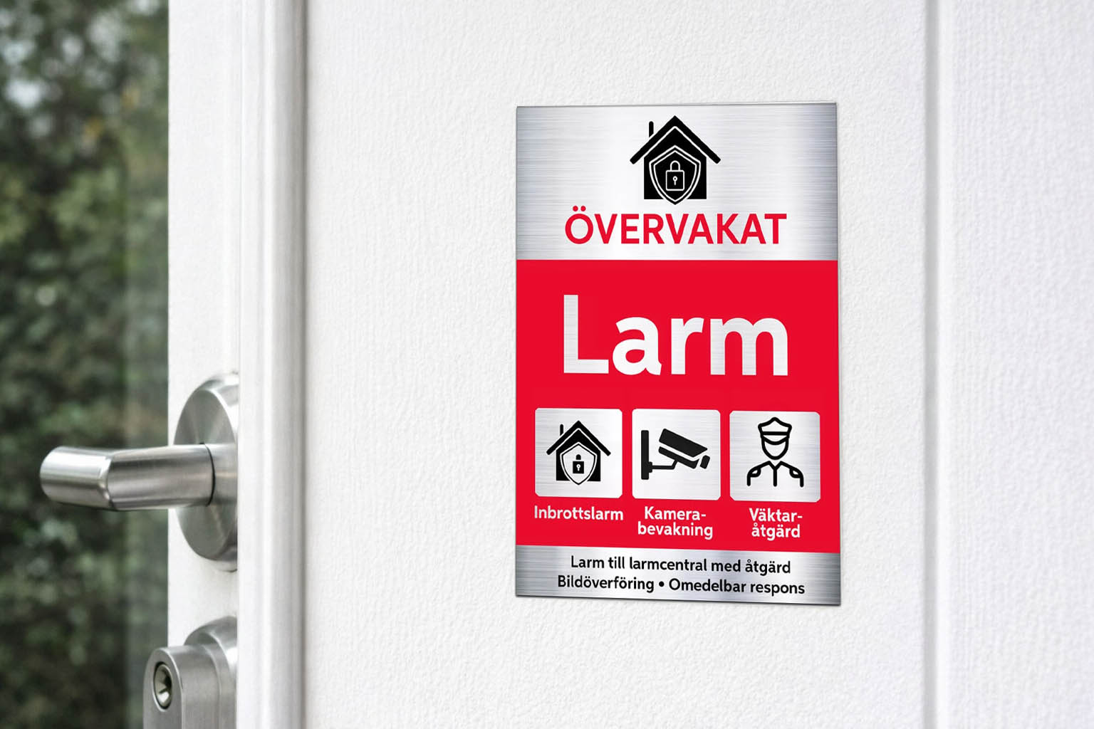 Vill du förstärka avskräckningen ytterligare kan du kombinera larmdekaler med skyltar för kameraövervakning.