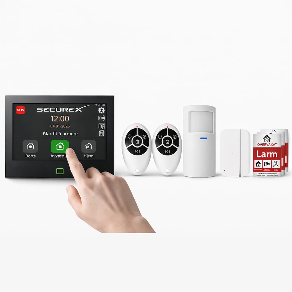 SecureX Connect Pro Kit er et komplett, moderne og utvidbart alarmsystem for hjem, kontorer og mindre eiendommer. Det er enkelt å komme i gang med, stabilt i drift og gir deg full kontroll både via den tydelige 7-tommers berøringsskjerm og i Stonehouse Smart-appen.