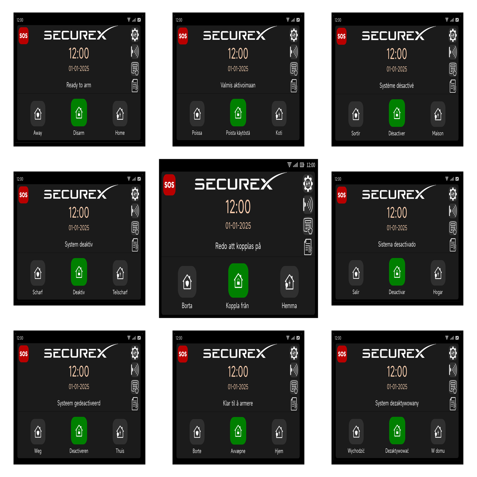 SecureX-alarmen panel (med display og ren tekst), talemeldinger og Stonehouse Smart-app tilgjengelig på: