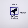 Selvklebende kameraskilt laget av hvit kvalitetsvinyl. Dekaler bør settes på for eksempel vinduer og dører i boliger eller butikker for å hindre tyveri og hærverk. Tilgjengelig i flere størrelser og alternativer.