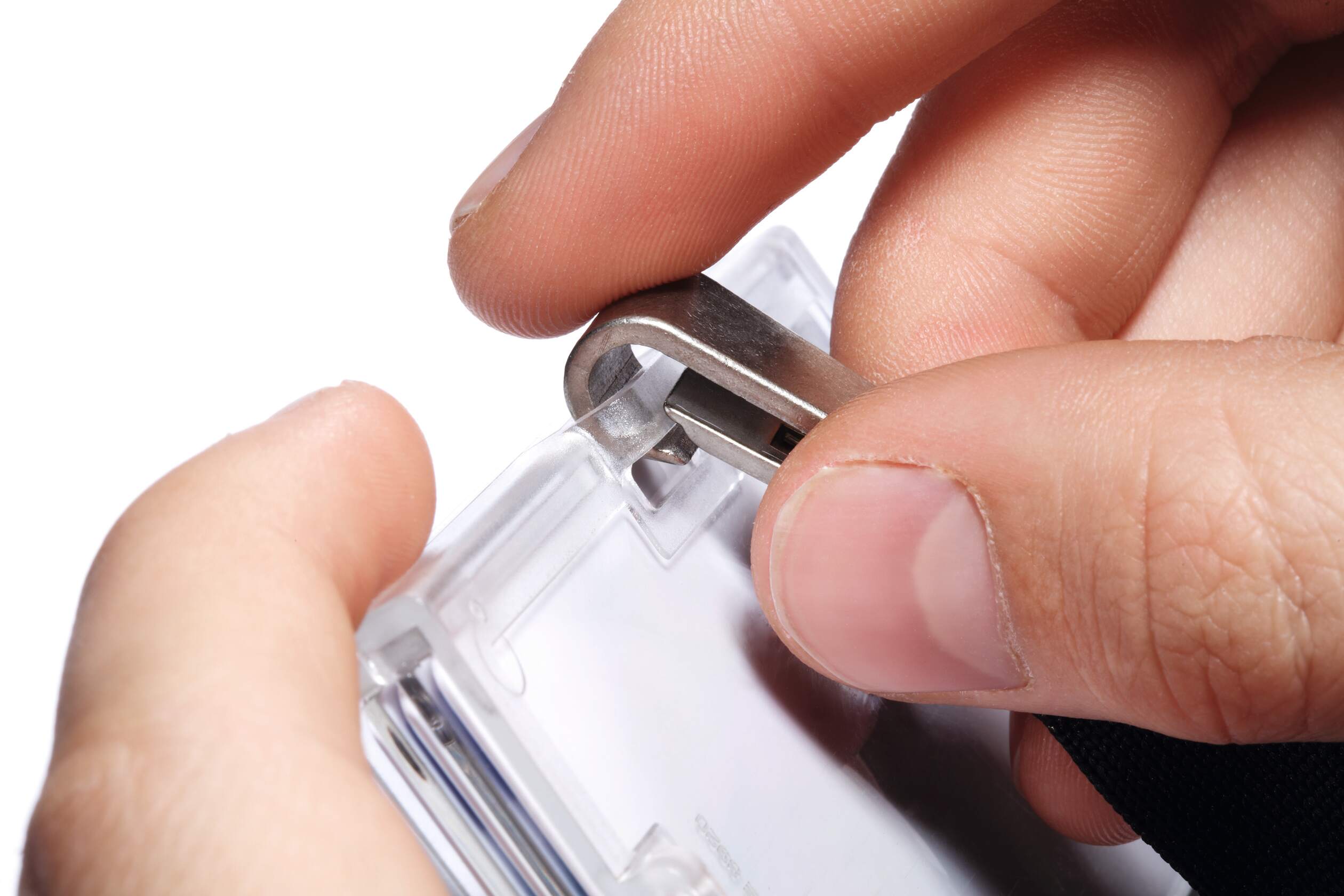 1,5 cm bredt bånd av silkemykt tekstil med sikkerhetslås som åpnes hvis du blir fanget i noe. Brukes sammen med kortholdere til adgangskort, navnelapper med hull eller som nøkkelringer. Den 1,2 cm brede, roterbare metallkarabinen passer til alle Durables kortholdere og sørger for at kortholderne sitter godt på plass.