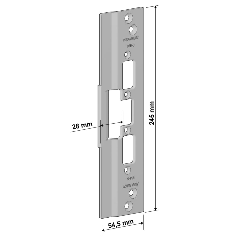 ASSA ABLOY 965-S to słupek montażowy ze stali nierdzewnej, do systemu profili Schüco ADS 65 HD. Pasuje do standardowej płyty końcowej Assa w serii 900. Służy do dostosowania mocowania elektrycznej płyty końcowej do standardowej wnęki Schüco.